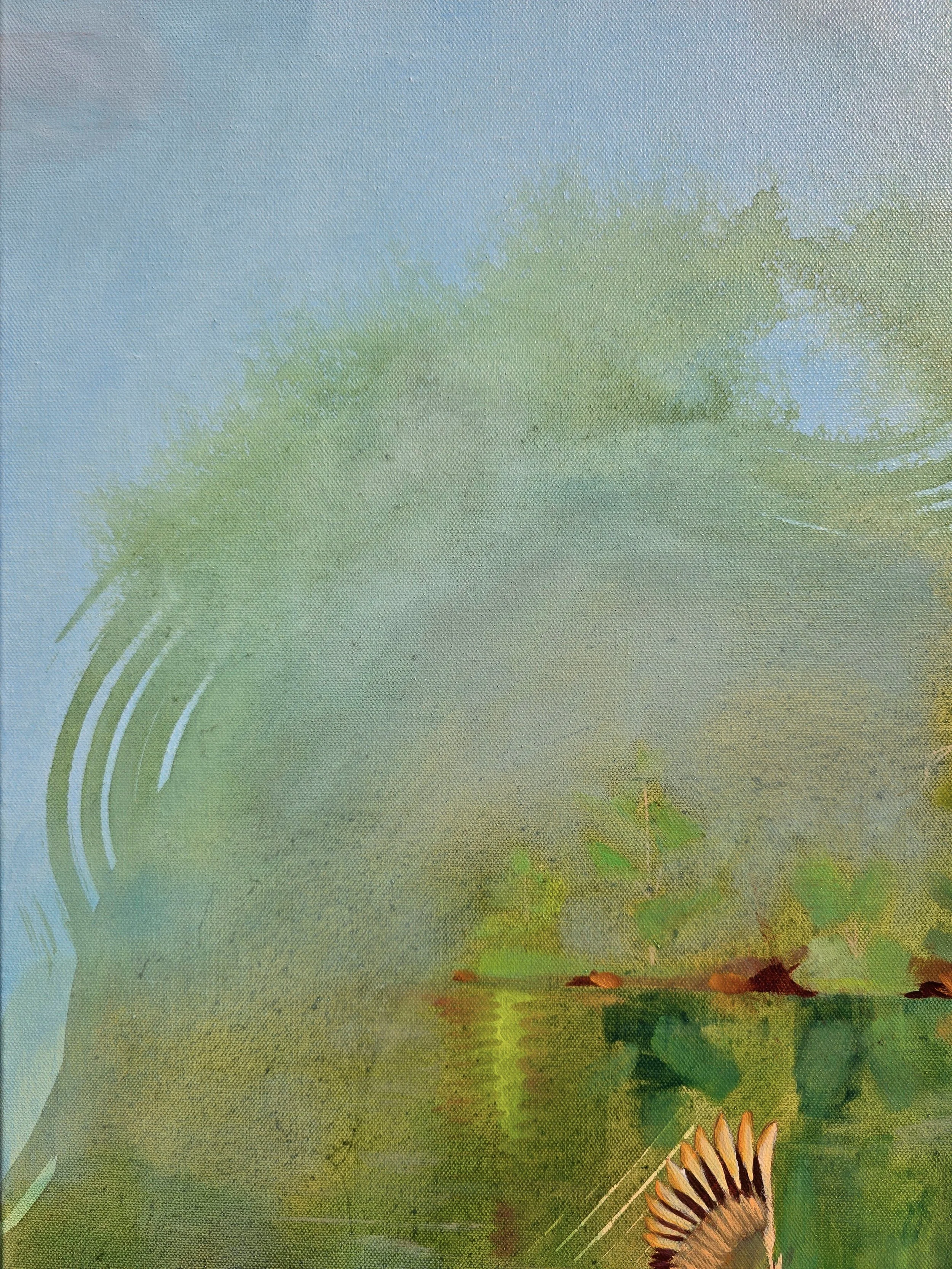 Die zwei Erpel, die sich im Wasser treffen, können für den Betrachter mehr bedeuten. Vielleicht sind es zwei Wesen, oder vielleicht ist es ein einzelnes Tier, das in verschiedenen Momenten des Ankommens zu sehen ist. Es bleibt dem Betrachter überlassen, diese Entscheidung zu treffen – so wie es in unserem Leben oft nur von uns abhängt, wie wir unseren eigenen „Safe Space“ gestalten und wann wir uns wirklich angekommen fühlen.